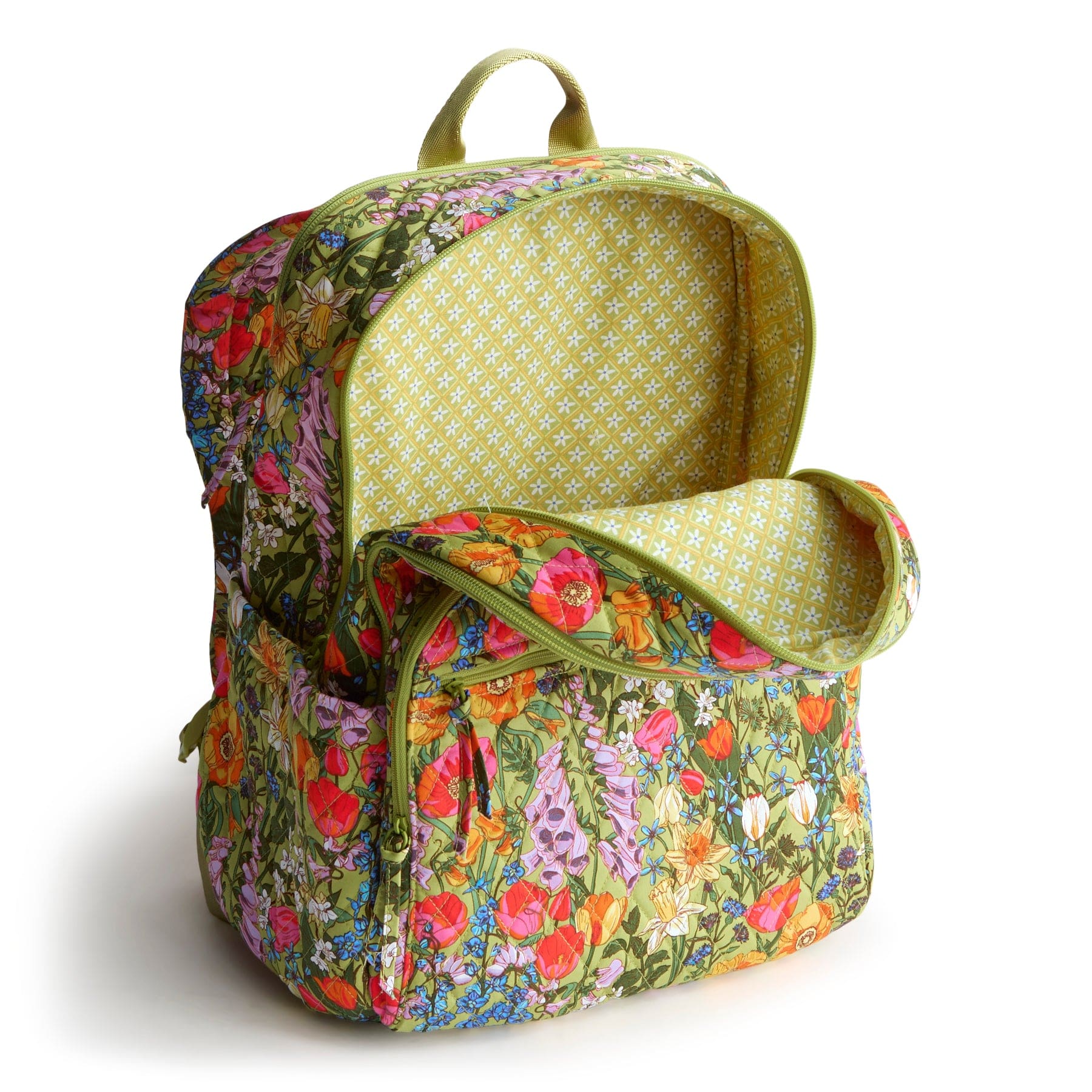Front zip compartment features four slip pockets and a pen slip pocket